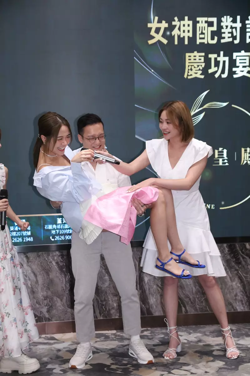 至於獲讚最真擊貼地CP的梁敏巧(Maggie)與劉啟進(Matt),則被要求在官宣期間展示「愛的公主抱」,結果《女神》「體能擔當」阿Matt再度力王上身抱起Maggie讓現場一眾工作人員影相放題,場面熱鬧。