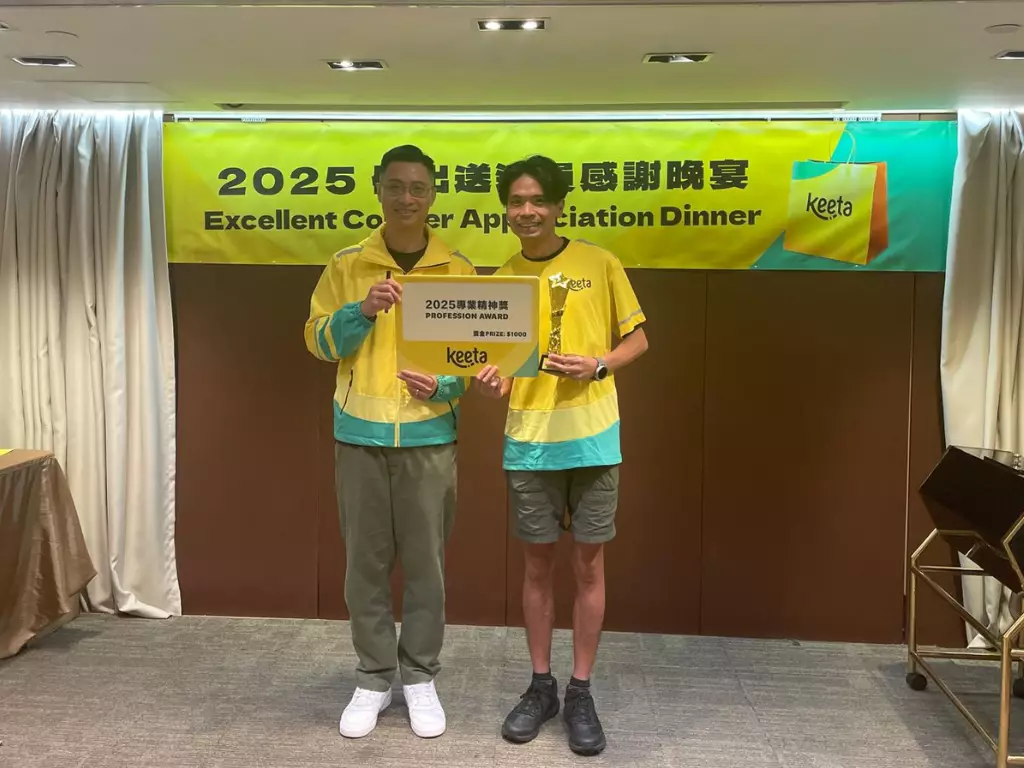 晚宴上,Keeta頒發了2個獎項,分別是「傑出貢獻送遞員獎」及「專業精神獎」,前者以完成訂單量、準時率、好評度的綜合評分作為得獎標準;後者即「專業精神獎」則表揚在配送服務中體現敬業態度的送遞員。晚宴更設有抽獎環節,獎品包括iPhone 16 Pro、iPad、Dyson風筒及超市禮券等,讓參與的約200名送遞員及其家人與眾同樂。