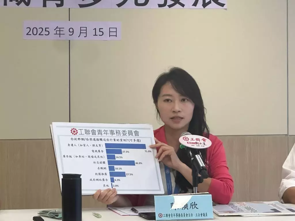 工聯會副理事長、青委主任陳穎欣指出,71%受訪者從家人、朋友、老師等身邊人獲取行業資訊,46.9%透過社交平台,27.5%透過電視廣告及學校接觸行業資訊。她表示:「青年接收的資訊不全面,但行業形象會直接影響青年的入行意願。」