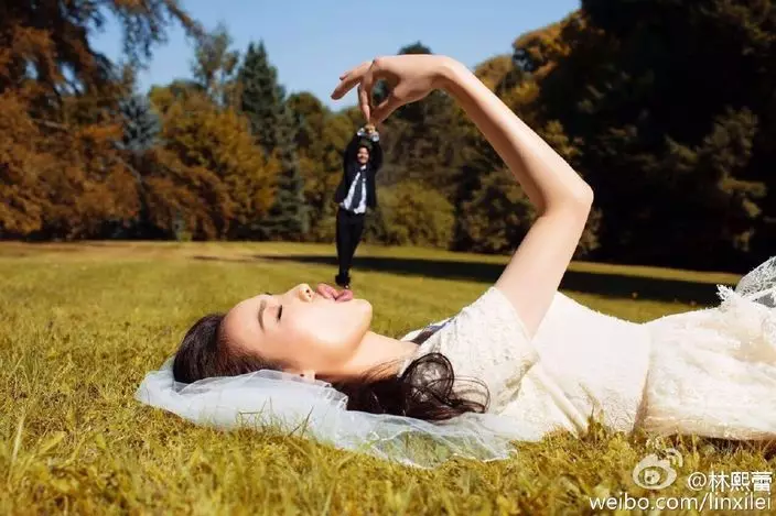 林熙蕾惡搞舒淇與馮德倫婚照(林熙蕾微博圖片)
