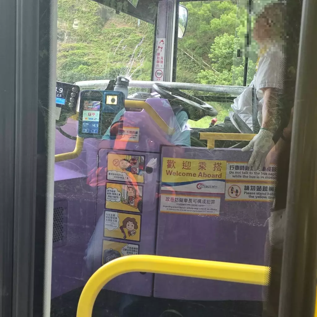 鐵通插穿城巴擋風玻璃擊中巴士司機。Threads@mandy_py_lau