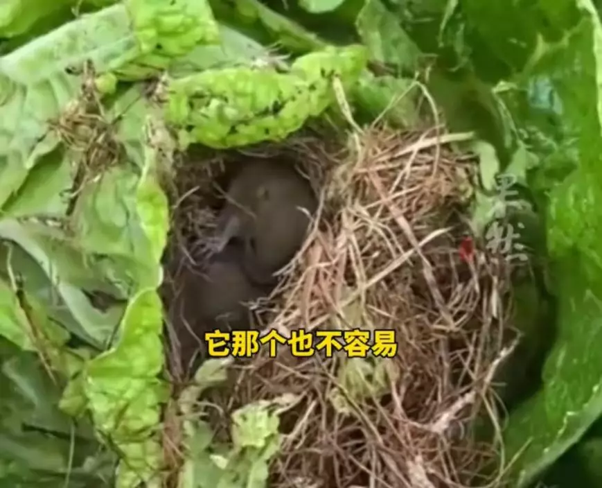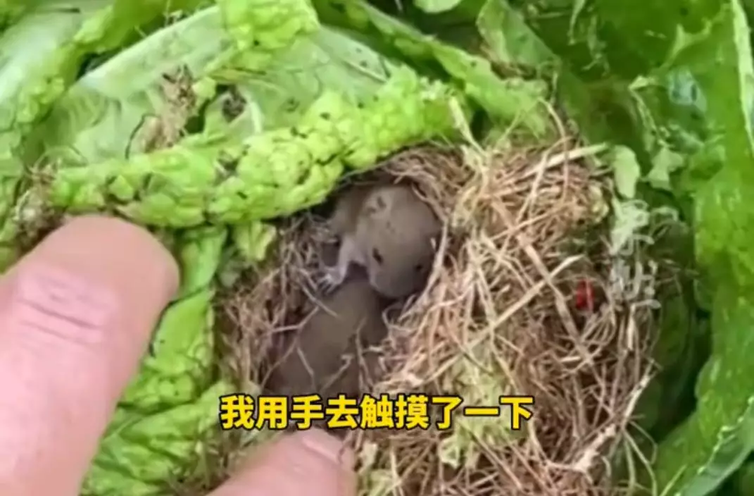 農夫見鼠寶寶蜷縮大白菜內,計劃捨棄收成留给牠們安家。影片截圖
