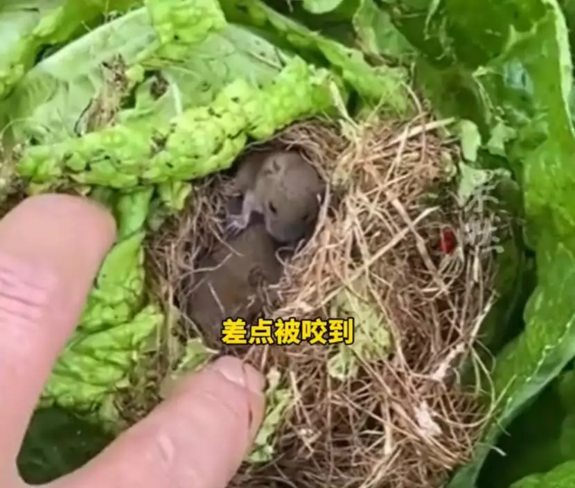 綜合內媒報道,雲南昆明一名楊姓農夫9月13日整理自家菜園時,意外發現一棵大白菜的葉心被動物掏空築巢,於是好奇伸手查探情況,結果手指險些被咬,細看才驚覺白菜之中竟隱藏著一個「鼠家庭」,裏面有至少4隻粉嫩鼠寶寶蜷縮其中。