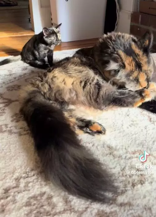 國外一名飼主「@bbtessytok」飼養了一隻4歲緬因貓「波比」(Poppy)以及癱瘓小玳瑁貓「波麗」(Polly),並經常於TikTok上分享牠們的日常趣事。不少網友剛看到影片時都擔心兩隻貓或會難以相處,沒想到「真正主導局面」的一方竟是看起來弱勢的波麗。