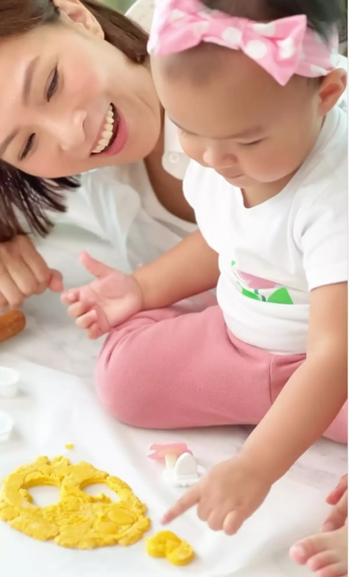影片中,戴著粉紅色蝴蝶結髮帶的Shera逐一將媽媽朱慧敏準備好的材料倒到麵粉中,然後用匙羹攪拌,並在媽媽的幫助下製成麵團,再用不同圖案自模具印出曲奇的形狀,非常成功!重點是,Shera全程都好乖女,就算坐在桌子上,她都完全沒有搗亂,乖乖跟從媽媽的指示去做,令網民都紛紛留言大言讚:「好叻女又有耐性」、「真係超聰明叻女」、「好聰明好可愛,認真做事超得意!」