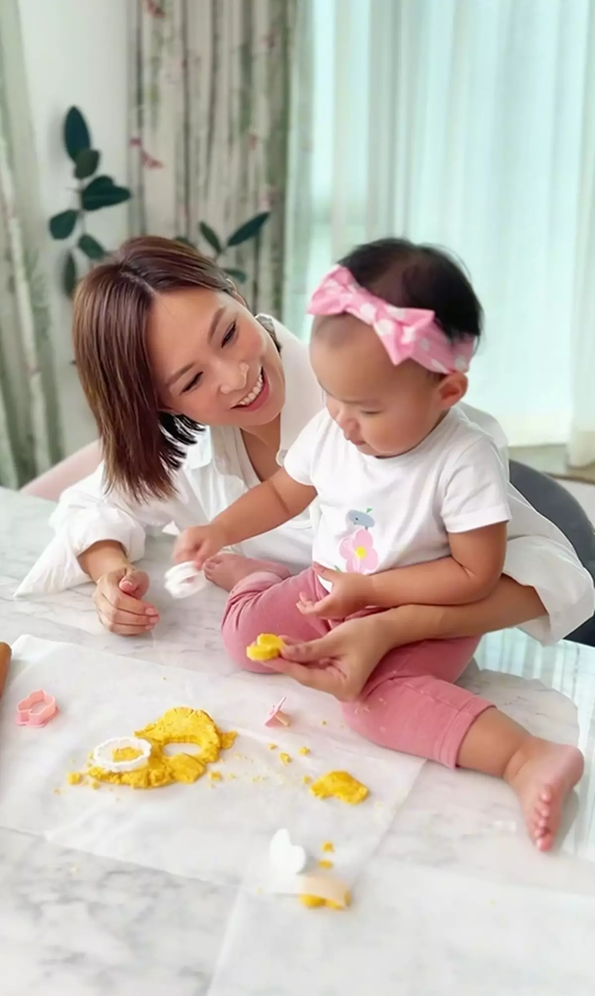 44歲的前港姐朱慧敏(Queenie)於2021年與心臟科專科醫生陳良貴結婚,兩年後「造人」成功,同年11月1日迎來囡囡Shera(樹娃娃),並於今年成功湊成「好」字,囝囝Aten於2月平安出世!此後,朱慧敏就不時在社交平台分享一對仔女的成長點滴,近日便分享和快2歲大的囡囡一齊整曲奇餅的影片!