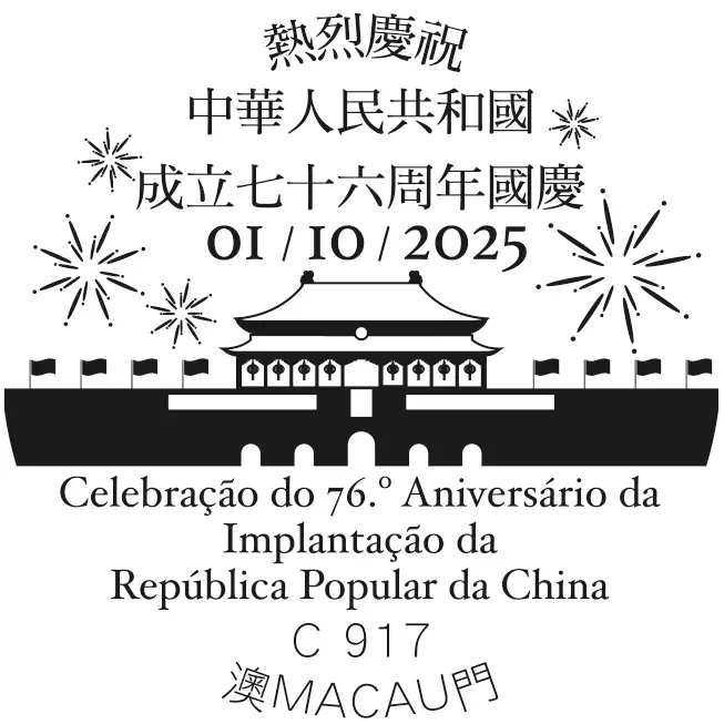 為慶祝中華人民共和國成立七十六周年國慶,郵電局特於二零二五年十月一日上午九時至下午二時,在郵政總局集郵商店設置臨時櫃台,為市民提供加蓋「熱烈慶祝中華人民共和國成立七十六周年國慶」紀念郵戳服務。