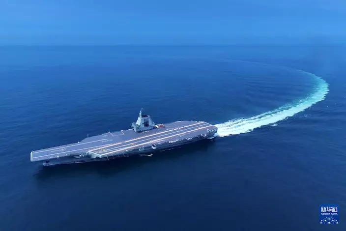 國防部新聞發言人蔣斌指,福建艦航空母艦日前通過台灣海峽,前往南海開展試驗訓練任務,是航母建造過程中正常安排,符合相關國際法和國際實踐,不針對任何特定國家和目標。