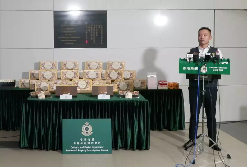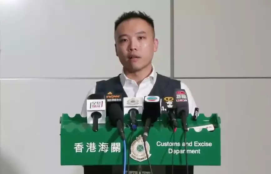 海關版權及商標調查科版權及商標一般調查組調查主任何高節向傳媒講述案件詳情。香港海關FB