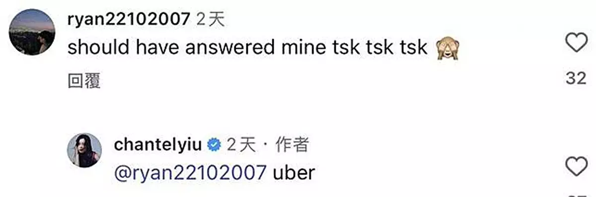 網民留意到,兩人的互動可說是「全天候在線」。姚焯菲在IG分享留學日常影片時,李立仁幾乎即時按讚或留言;反過來,李立仁貼近照,姚焯菲也會迅速回應。這種頻繁互動,讓兩人的友情引起不少關注,也被不少網民認為是「閃閃有愛」的校園友誼範例。