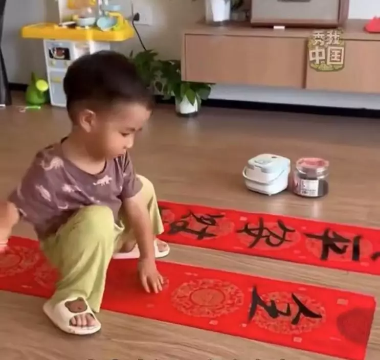廣東一名3歲男童淡定揮毫寫對聯,筆勢流暢字跡遠超同齡孩子,令網民驚嘆:書法家轉世?