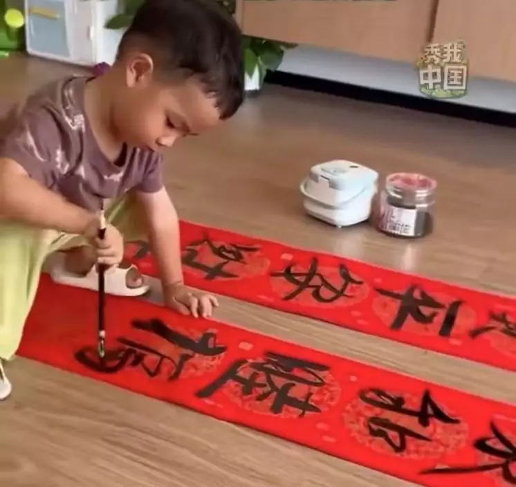 綜合內媒報導,廣東一名尚未滿3歲的男童朗朗近日因一段書法影片在網上爆紅。影片中,朗朗神情淡定握毛筆,雖然握筆方式並不標準,宛如握奶樽一樣,但下筆灑脫自然。只見他迅速在紙上揮毫落墨,連續寫出「花開富貴」、「萬事如意」等對聯內容,筆勢流暢、一氣呵成,字跡遠超同齡孩子的水準。