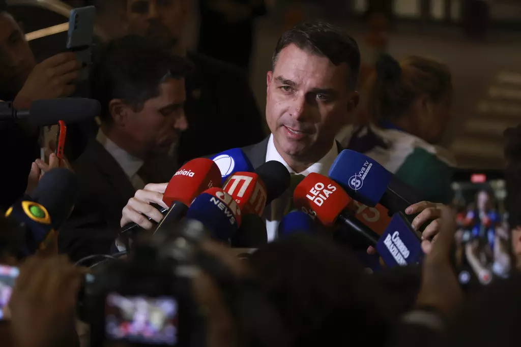博爾索納羅的兒子弗拉維奧在醫院外接受傳媒訪問。AP資料圖片