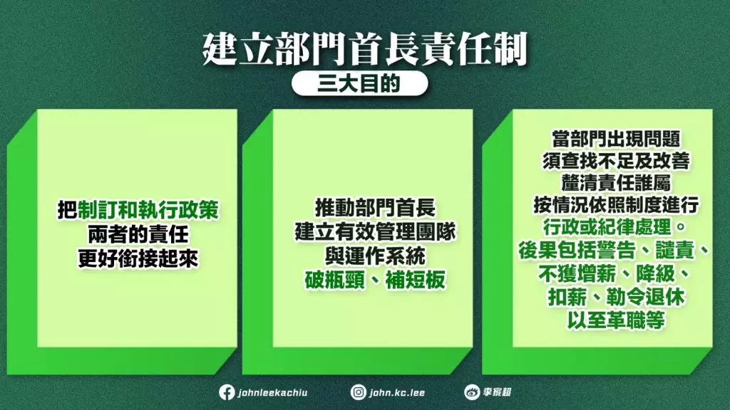 新一份施政報告提出,建立「部門首長責任制」