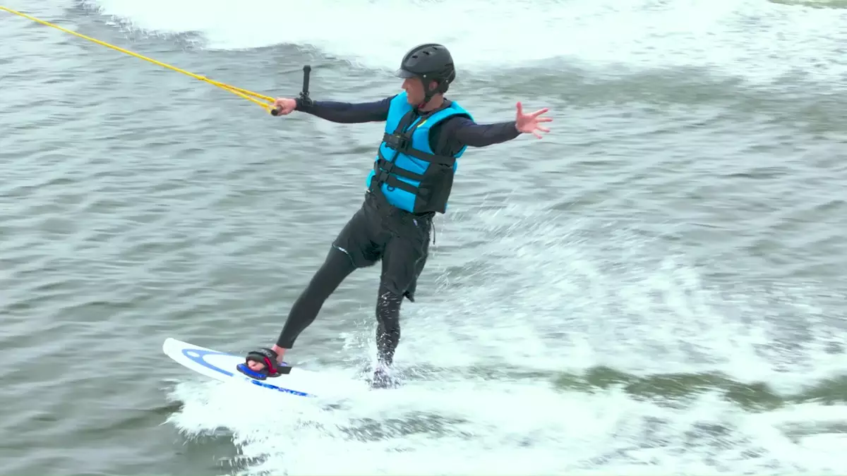 三人挑戰刺激運動—索道滑水。