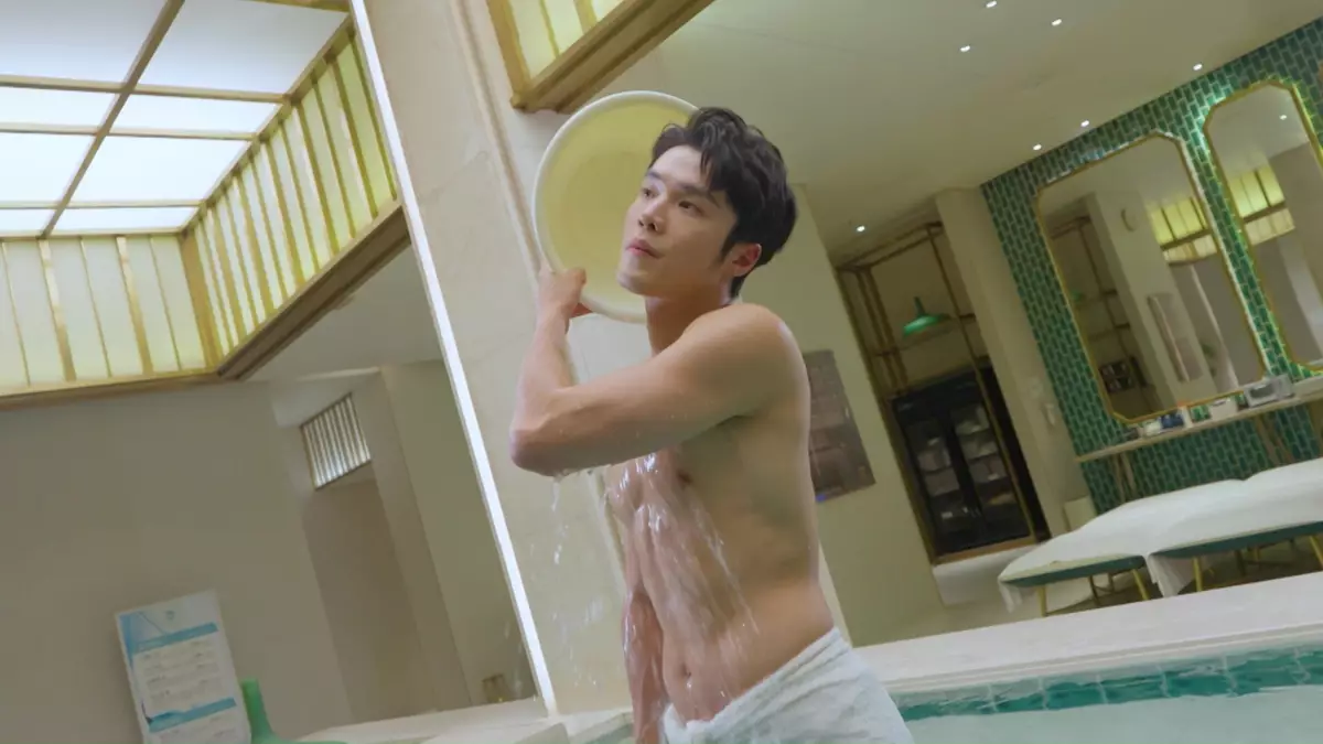 畫面一轉,馬貫東只包著毛巾。