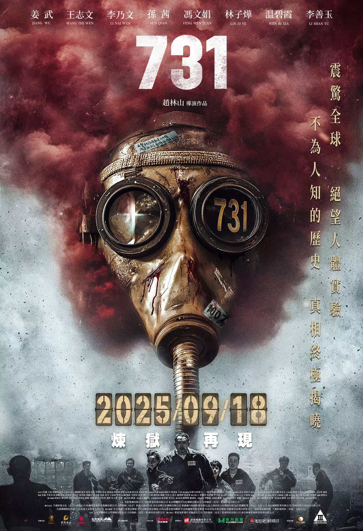 電影《731》已正式公佈將於9月18日港澳戲院全線上映,並公佈了最新海報、預告及劇照,震撼全城!電影由趙林山編劇及執導,聯同多位實力影星演出,包括姜武、王志文、李乃文、孫茜、馮文娟、林子燁、溫碧霞、李善玉等。電影講述1945年抗戰勝利前夕,侵華日軍第731部隊在哈爾濱平房區以「給水防疫」為名,秘密進行慘無人道的細菌戰研究,大肆抓捕平民進行活體實驗,妄圖以此扭轉敗局。小販王永章等人被強行抓入「特設監獄」,日軍以「配合健康檢查與防疫研究即可換取自由」的虛偽承諾,欺騙他們遭受凍傷實驗、毒氣實驗、活體解剖等極端折磨。由於電影逼真還原當年戰爭實驗恐怖慘況,電影被電檢處正式評為III級電影(十八歲以下人士不准入場觀看)!然而影片最終目的是通過平民視角揭露日軍反人類暴行,展現絕境下國人不屈的反抗精神,旨在讓世人銘記歷史,勿忘國恥,捍衛和平。
