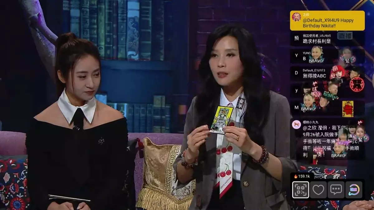 由梁思浩、黃紫恩(Jojo)及黃耀英(Darren)主持,TVB Plus(82台)靈異直播一小時節目《直播靈接觸》昨晚(9月16日)請來嘉賓塔羅師羅泳嫻(裸泳),解開解開塔羅牌之謎。
