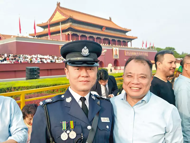梁俊傑(左)與前員佐級協會主席林志偉於天安門廣場親身見證國家強盛。《警聲》圖片