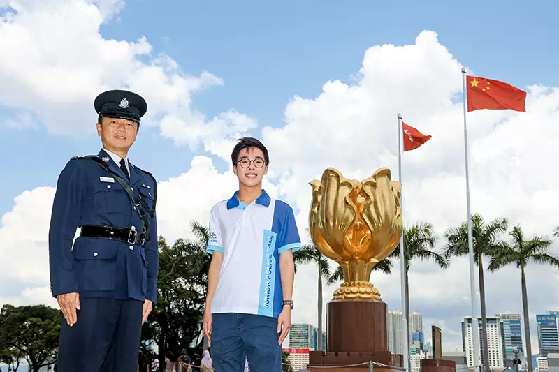 同樣希望肩負起弘揚愛國精神責任的,還有20歲的曾梓軒。他就讀於香港中文大學公共衞生理學士課程三年級,既是黃大仙少年警訊領袖,也是今年警隊公共關係部的暑期實習生。他透過保安局青少年制服團隊領袖論壇的推薦,參加青年國安大使培訓計劃後,成為代表團的一員。