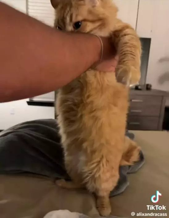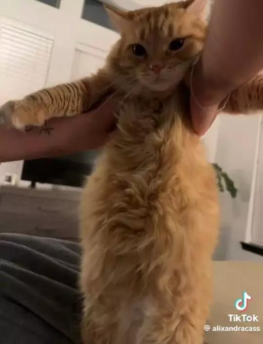 美國德州休斯頓一名30歲女飼主亞歷桑德拉(Alixandra)飼養了一隻貪食橘貓「斯帕羅」(Sparrow),並時常於TikTok上紀錄牠的可愛日常。日前,斯帕羅因抵擋不住「食物的誘惑」,竟將自動餵食器推倒弄壞並一口氣吃光約兩周的貓糧,導致肚子瞬間圓碌碌,模樣相當滑稽。