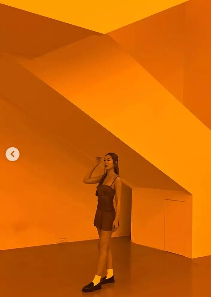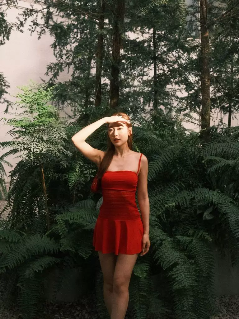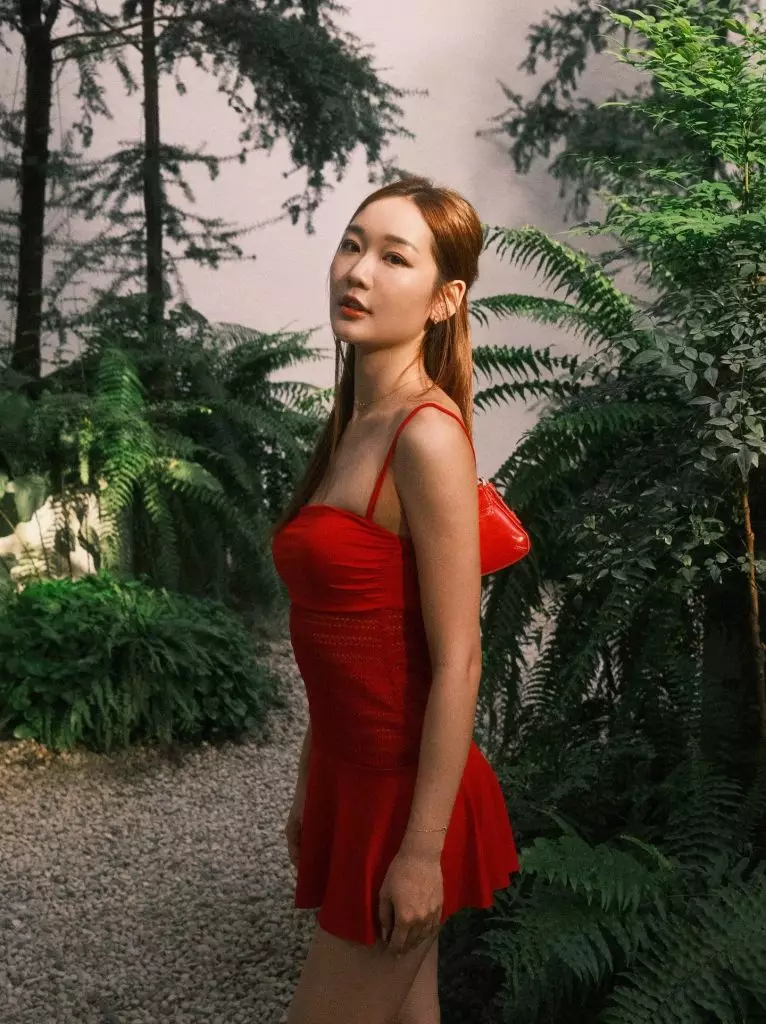葉靖儀今次選擇於綠意盎然的樹林中取景,鮮紅色長裙與背景形成強烈對比,充滿電影感的構圖獲粉絲激讚「仙氣滿瀉」,她亦以英文留言「like movie scene」。