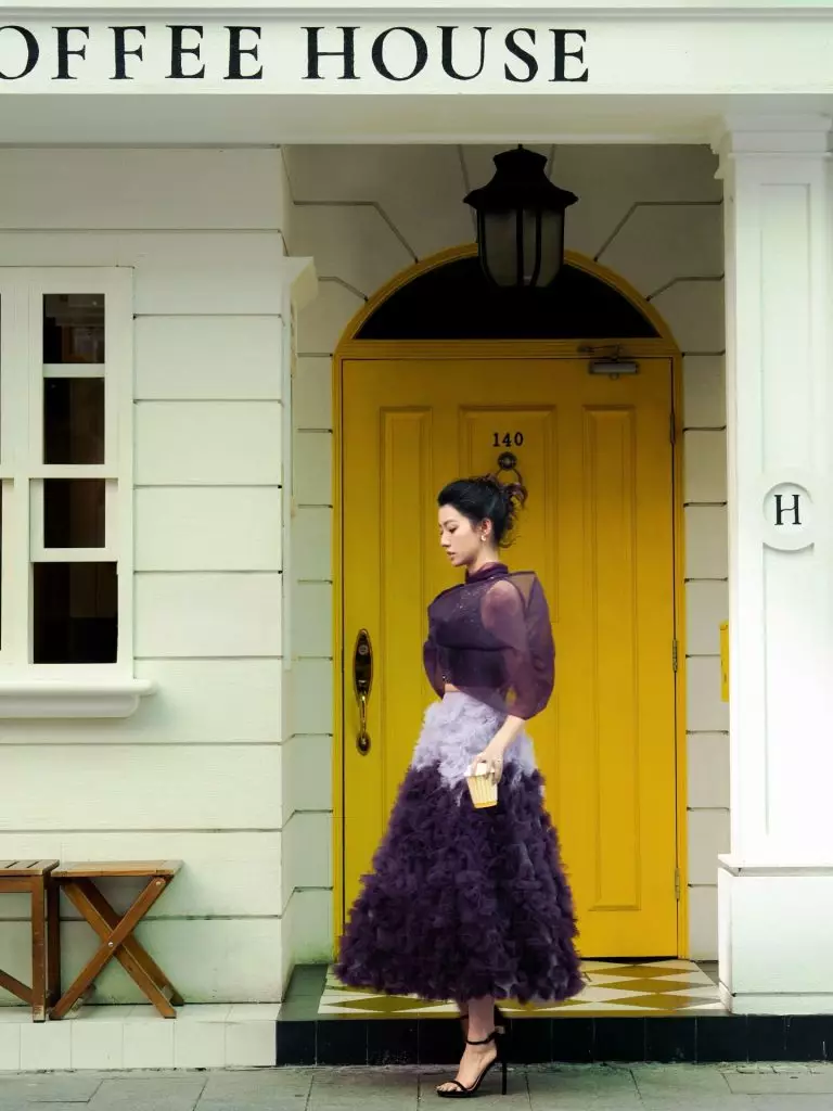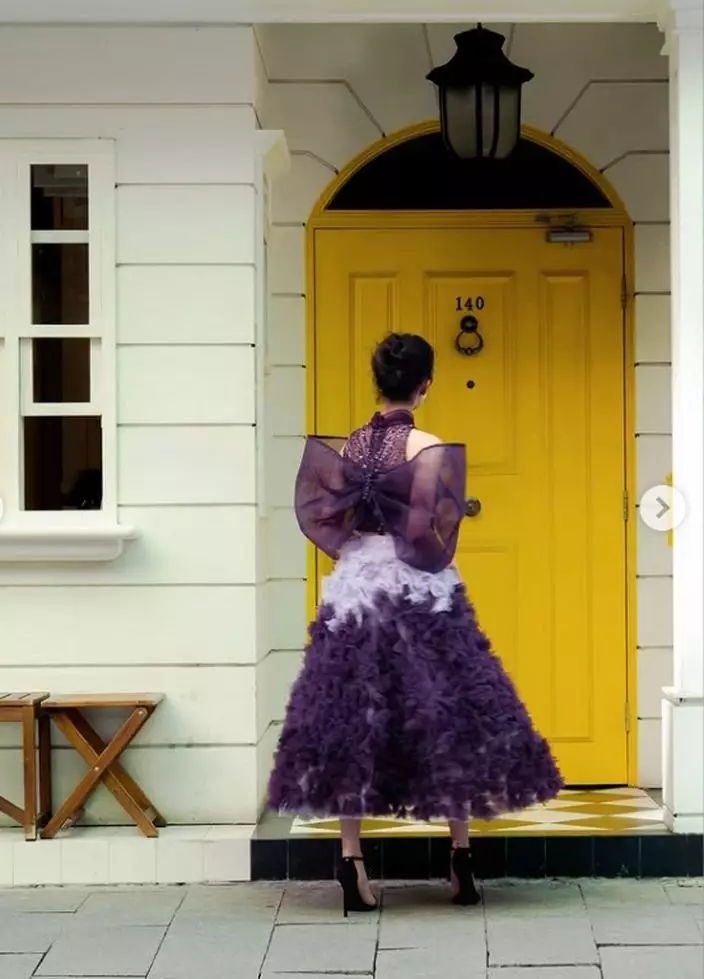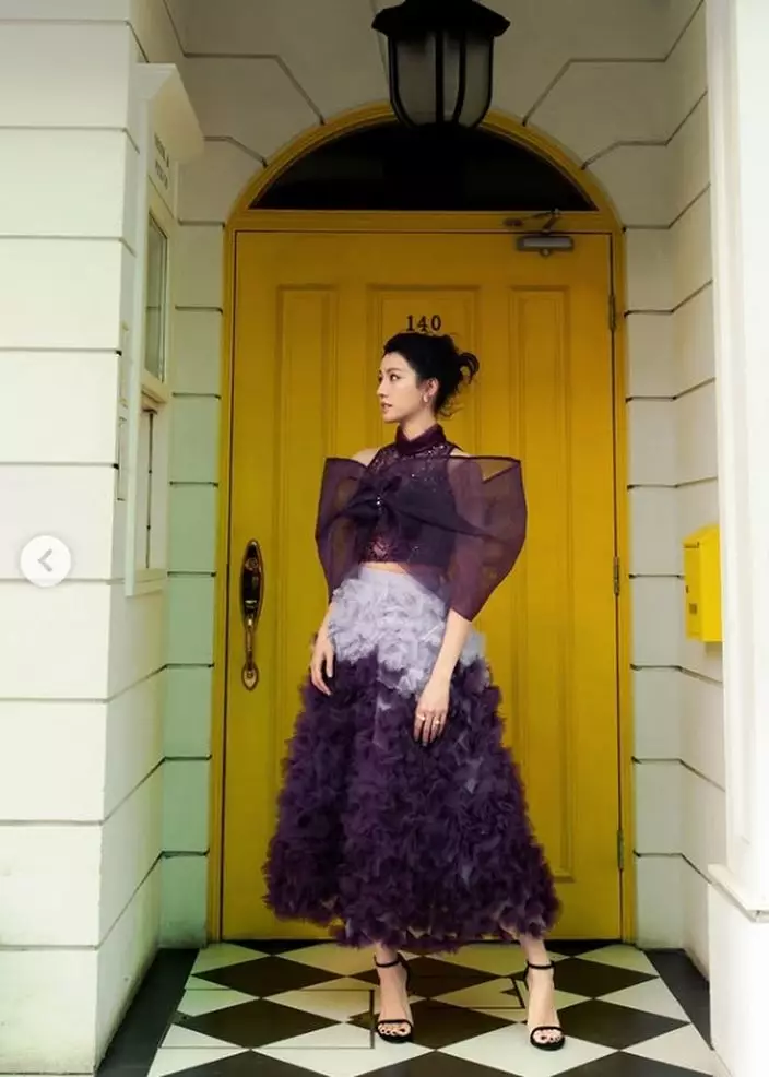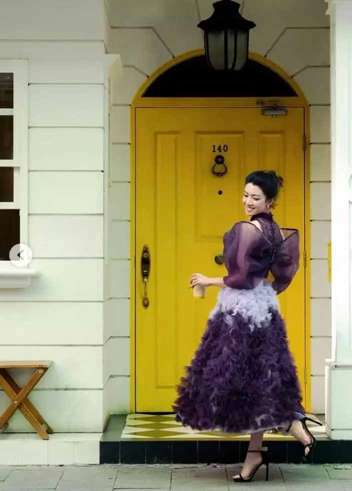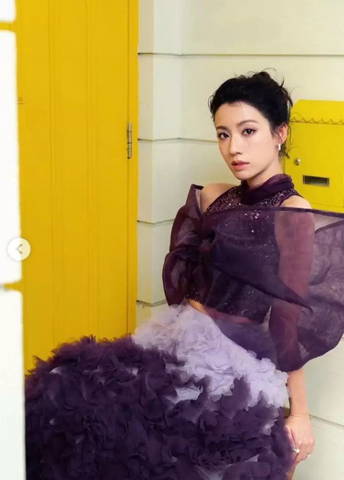 雖然幕前作品減少,但蔡思貝仍不時透過社交平台與粉絲互動,分享生活點滴。日前她出席公開活動時,以一襲紫色露肩薄紗長裙亮相,瞬間成為全場焦點。相片中可見她置身於復古黃色大門前,輕倚門框淺笑,飄逸裙擺隨風輕揚,宛如仙子下凡,仙氣逼人。