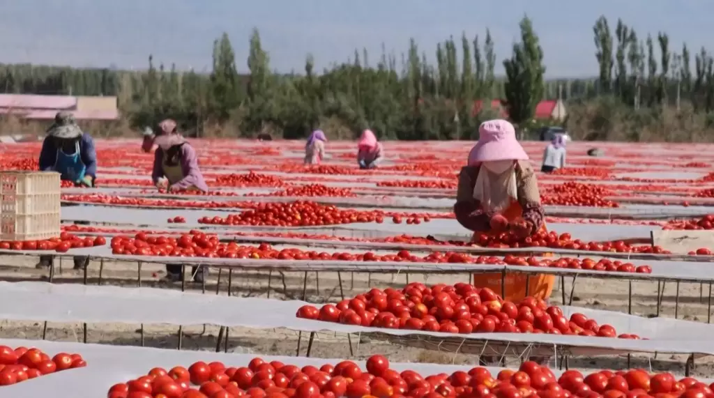 截至2024年,新疆番茄種植面積已超過8萬公頃,番茄加工全產業鏈已機械化。新疆有200多家企業生產番茄醬、番茄汁、番茄紅素、番茄籽油等多種產品,外銷全球70多個國家地區。