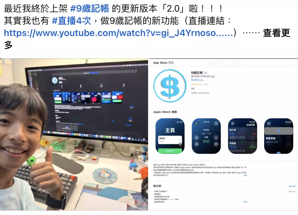 新北市10歲小學生「海馬」已經自主開發Apple Watch記帳App並登上AI年會分享。Threads圖片