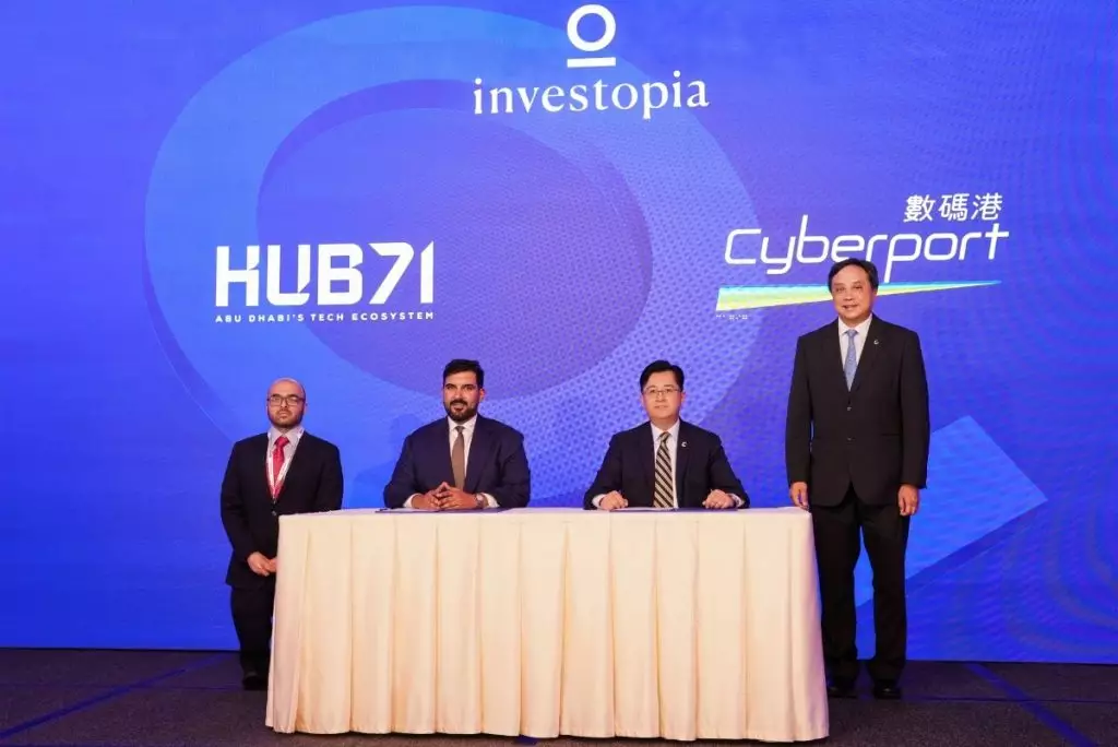簽署儀式在Investopia Hong Kong活動期間舉行,在數碼港主席陳細明、阿聯酋投資部副部長H.E. Mohammad Alhawi的共同見證下,數碼港首席公眾使命官陳思源、Hub71首席執行官Ahmad Ali Alwan簽署了合作備忘錄。