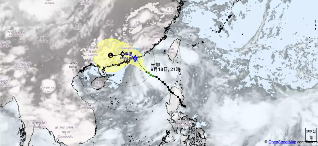 按照現時預測路徑,米娜會在星期五稍後至星期六初時登陸廣東東部沿岸,同時將受東北季候風影響而逐漸轉向偏西方向移動,移近珠江口一帶,但其登陸位置及強度存在變數。天文台屆時會視乎米娜的強度變化、其烈風區與本港的距離及本地風力變化,評估是否需要改發更高熱帶氣旋警告信號。