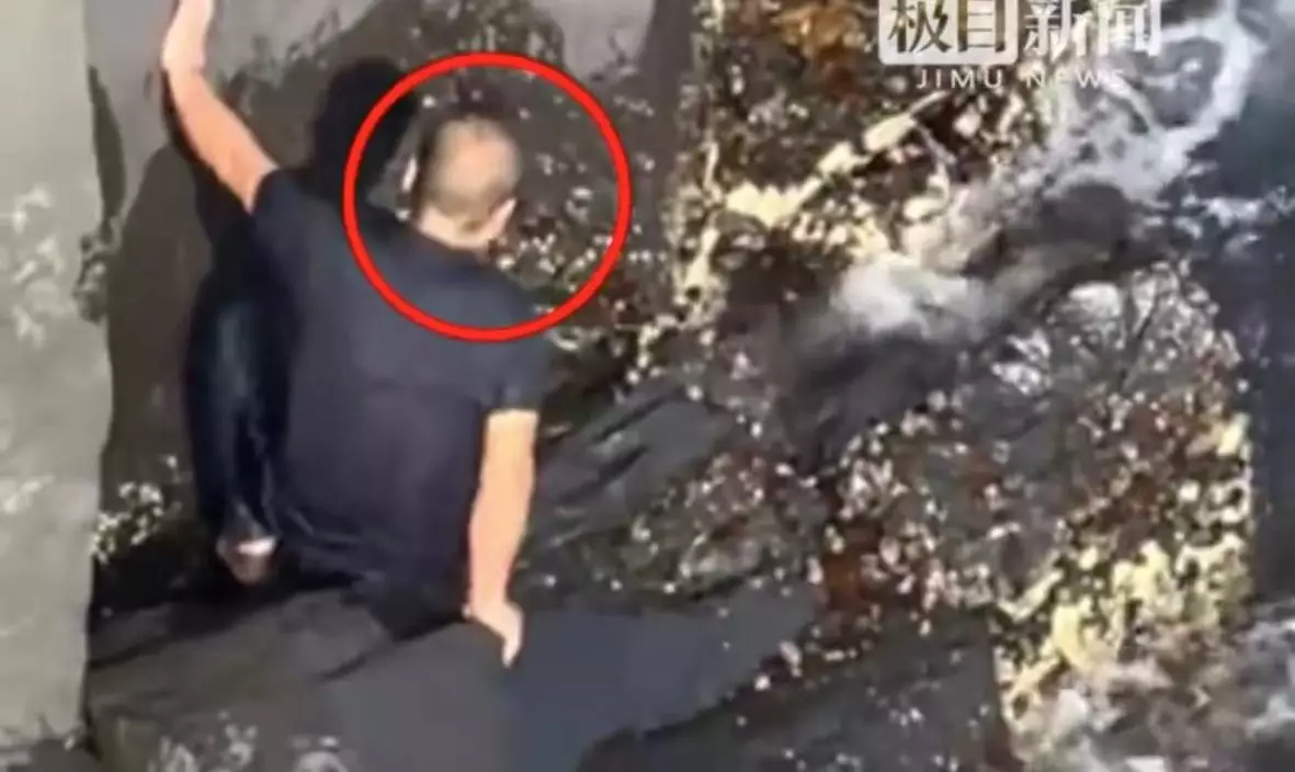崖壁險峻難靠岸 男子緊抓岩石拖人