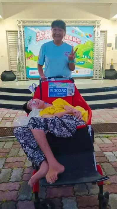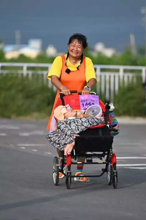 台灣慈母8年來陪腦麻痹兒子跑逾300場馬拉松。FB圖片