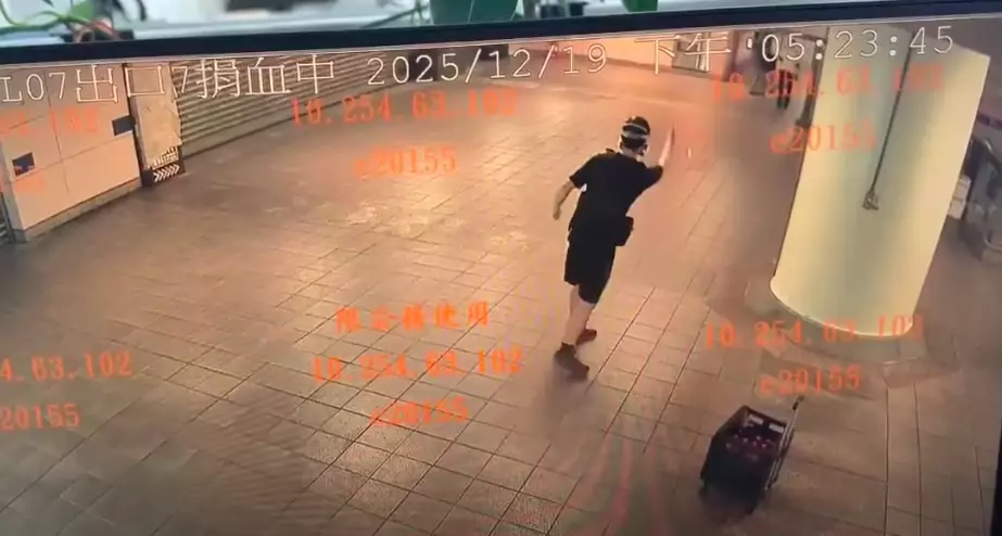 一名男子傍晚在台北車站投擲煙霧彈後,轉往捷運中山站外用長刀隨機斬人。網上圖片
