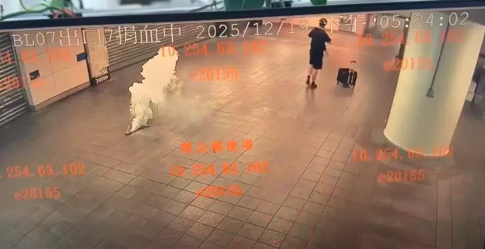 疑兇在車站內扔擲煙霧彈。網上影片截圖