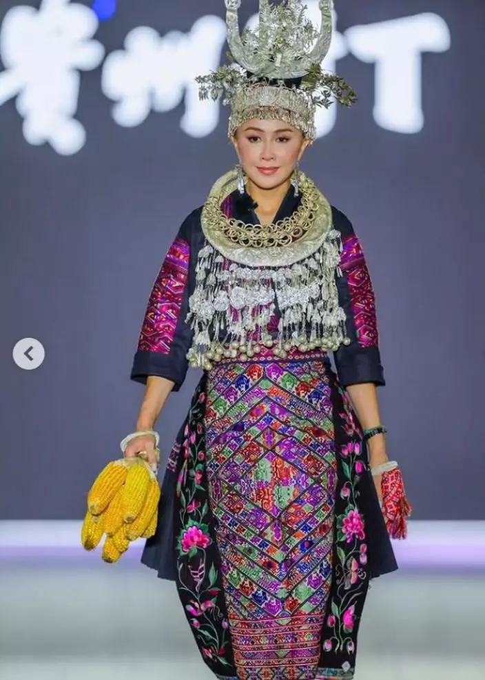 現年59歲的劉嘉玲日前現身貴州一場民族時裝騷,以一身苗族傳統服飾亮相,手持多條粟米自信行騷,完美融合當地民族風情與時尚氣場,令人眼前一亮。