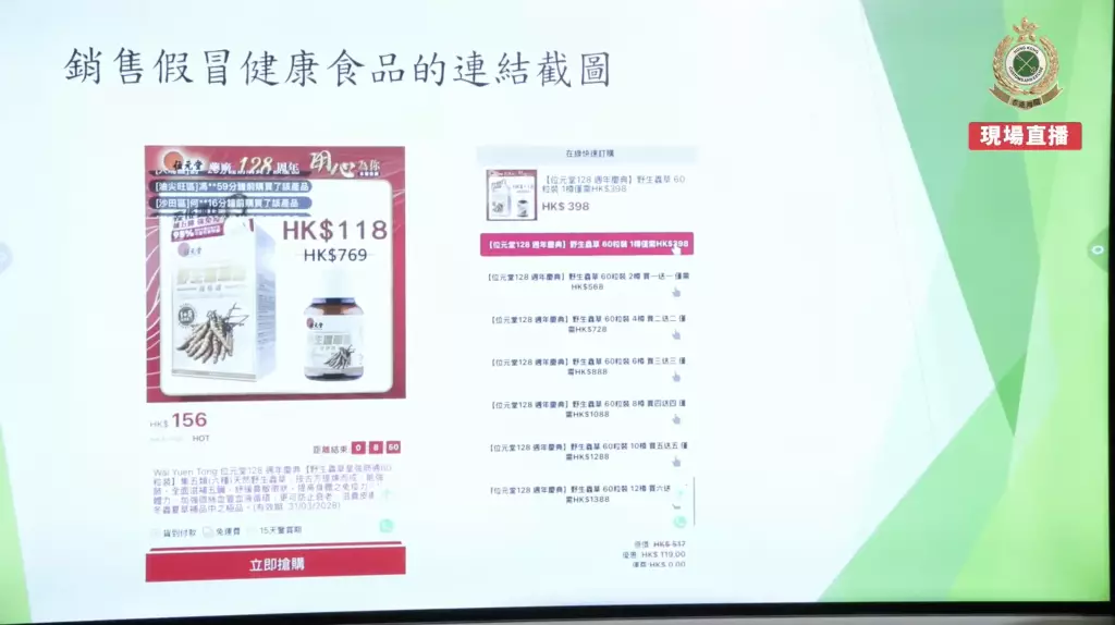 海關偵破有記錄以來最大宗網上售賣冒牌物品案件,檢獲1500萬元冒牌貨物,包括本地品牌健康食品,拘4男3女。