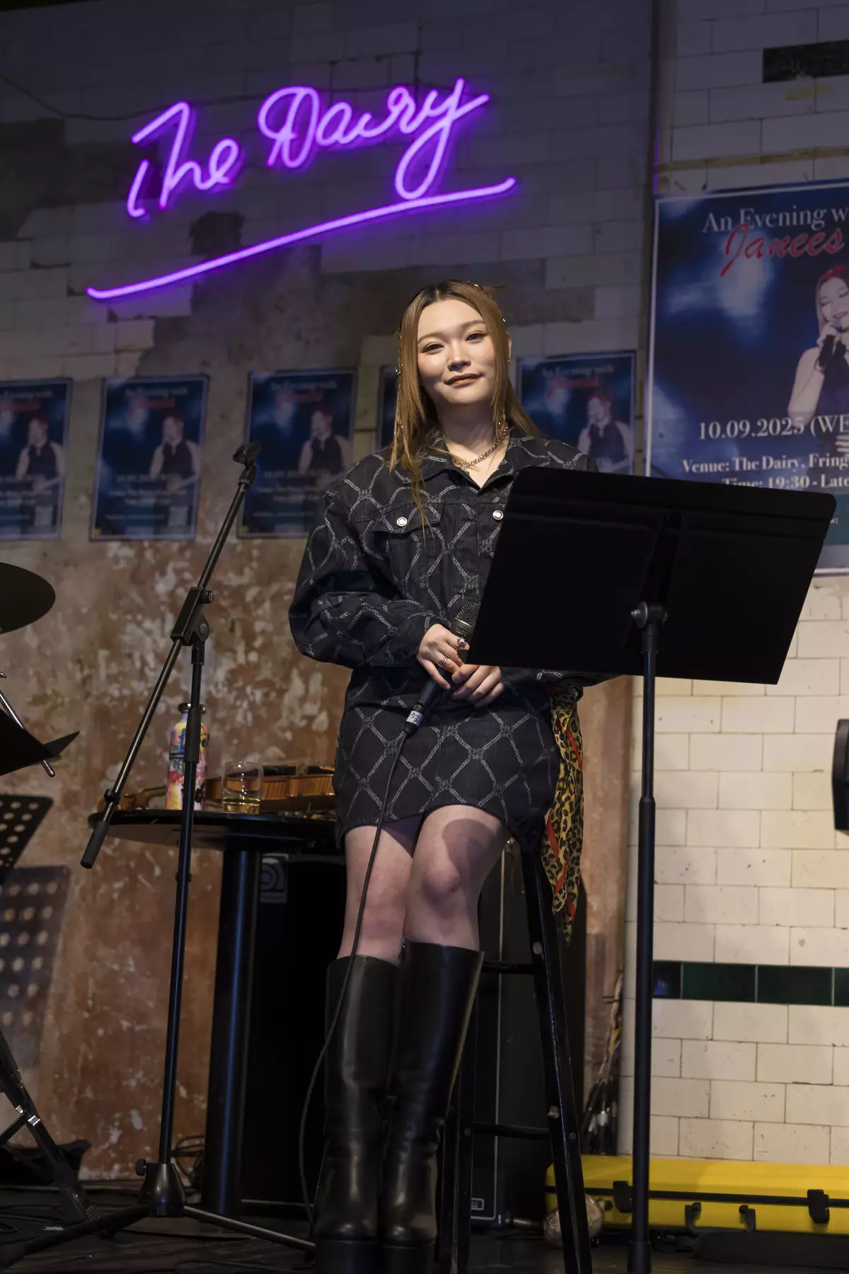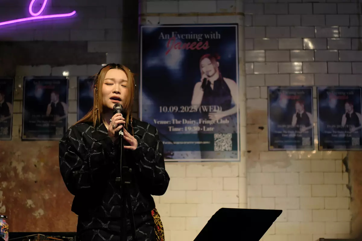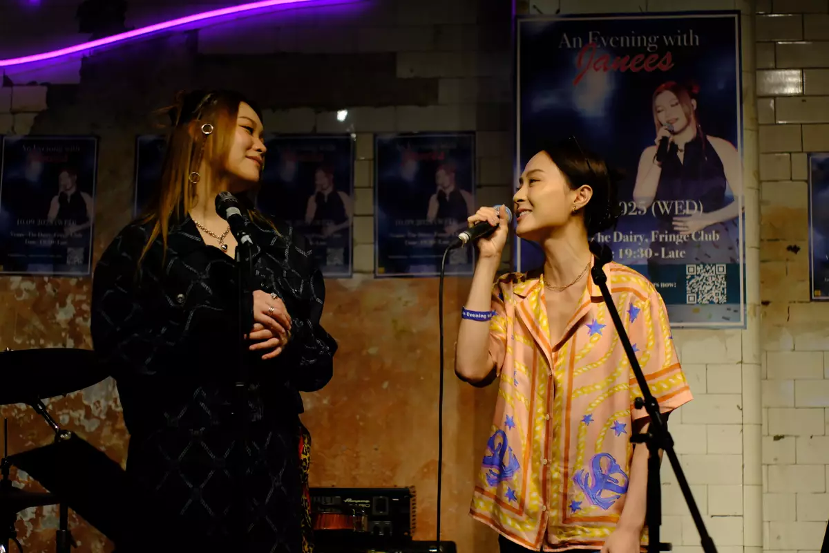 JFC(Janees Fanclub 黃洛妍後援會)日前(9月10日)在中環藝穗會的奶庫(The Dairy),為Janees舉辦第一個「即興交流」活動,完全是一場無劇本的午夜驚喜!這個即興的音樂文化交流會,是藝穗會的文化交流計畫The Orient打響頭炮的第一個演出,亦配合JFC未來一年的大計,為Janees舉辦一連串的即興交流活動。