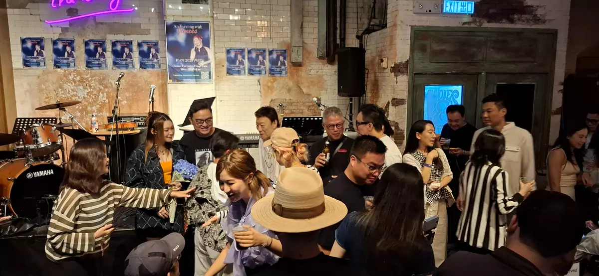 30分鐘的 Break 變成另一個小高潮 — Janees走下舞台與fans交談、淺酌、合影留念。另有部分 fans積極熱身,準備迎接下半場的Open Mic與 Janees上台合唱。舞台下的氣氛又溫馨、又熱烈,就像是圍繞著Janees的一個大家庭。