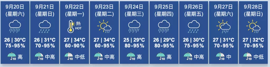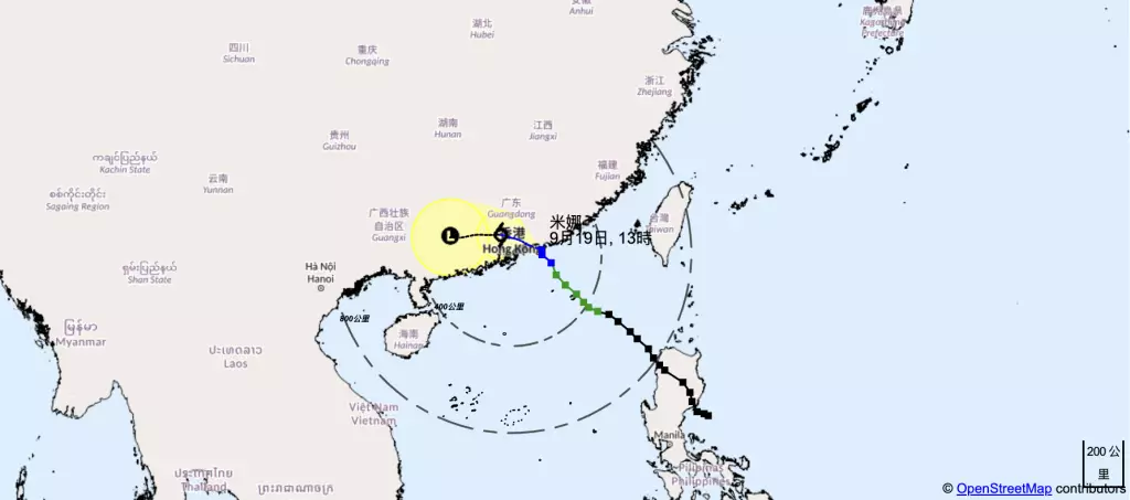 香港天文台表示,強烈熱帶風暴「米娜」集結在香港以東約140公里,預料向西北移動,時速約12公里,移向廣東東部沿岸。