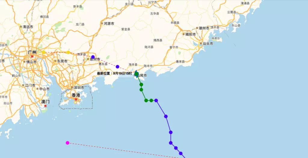 廣東省氣象台表示,熱帶氣旋米娜已於下午2時50分左右,在汕尾城區沿海登陸,強度逐漸減弱。