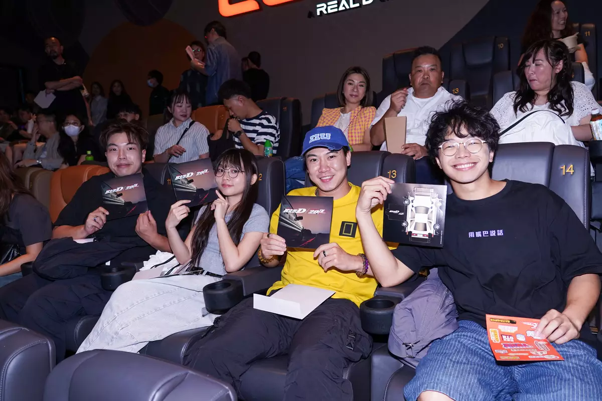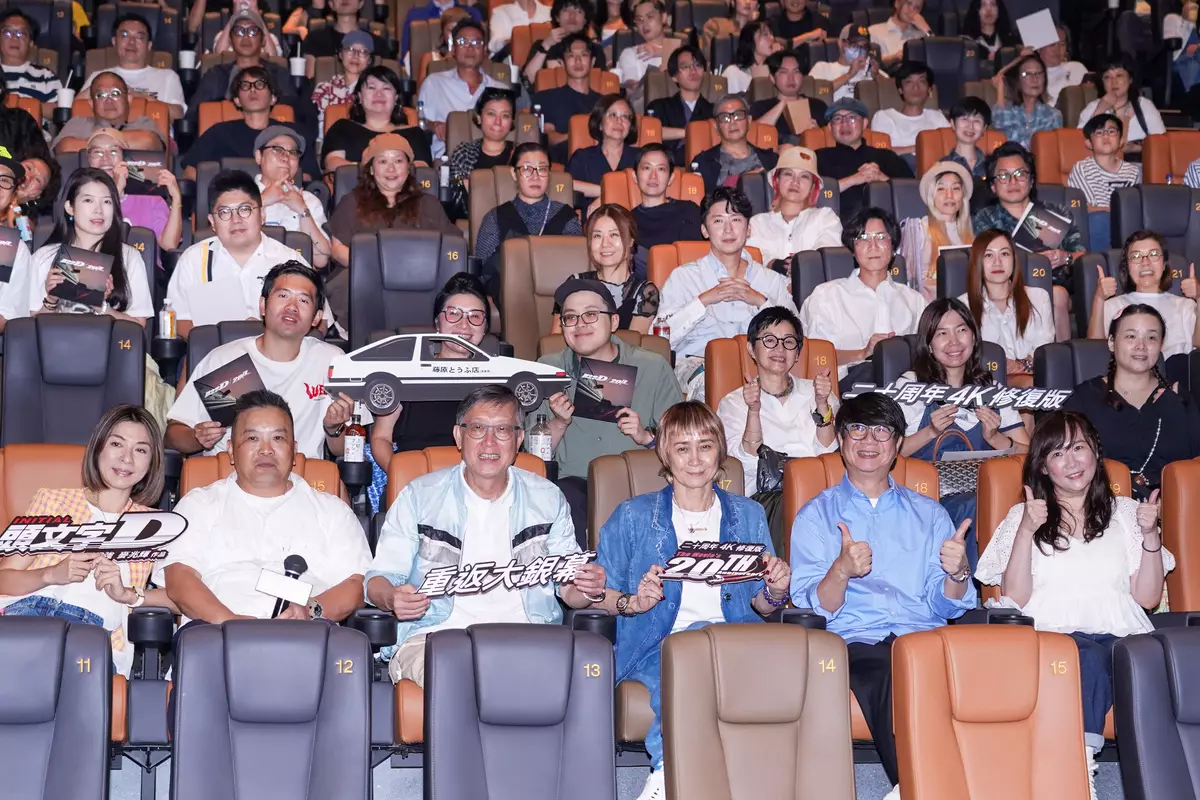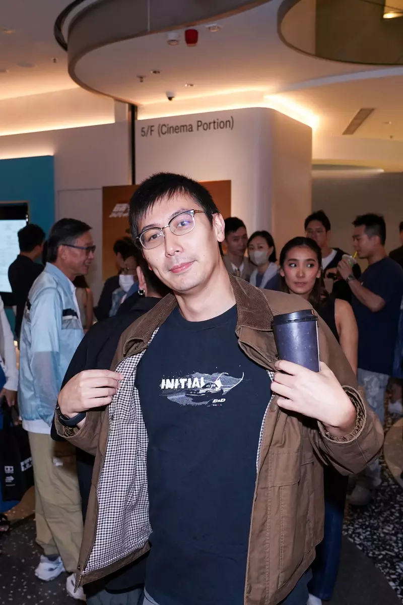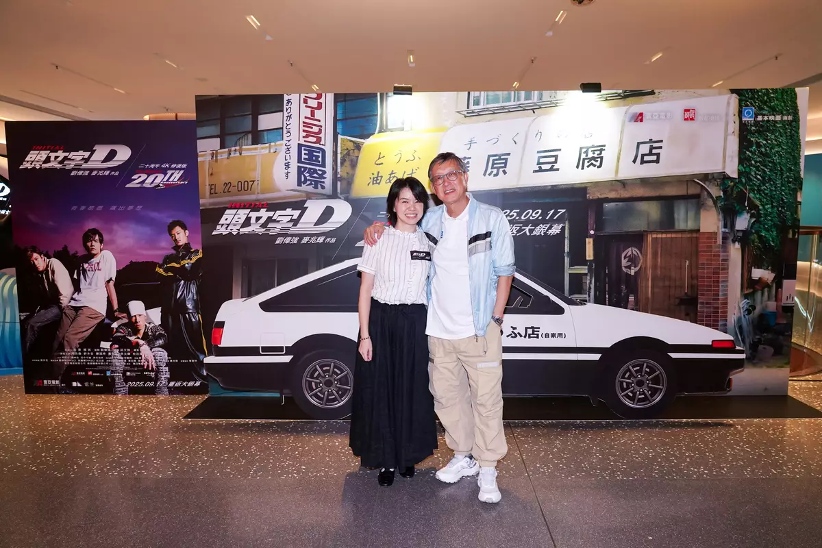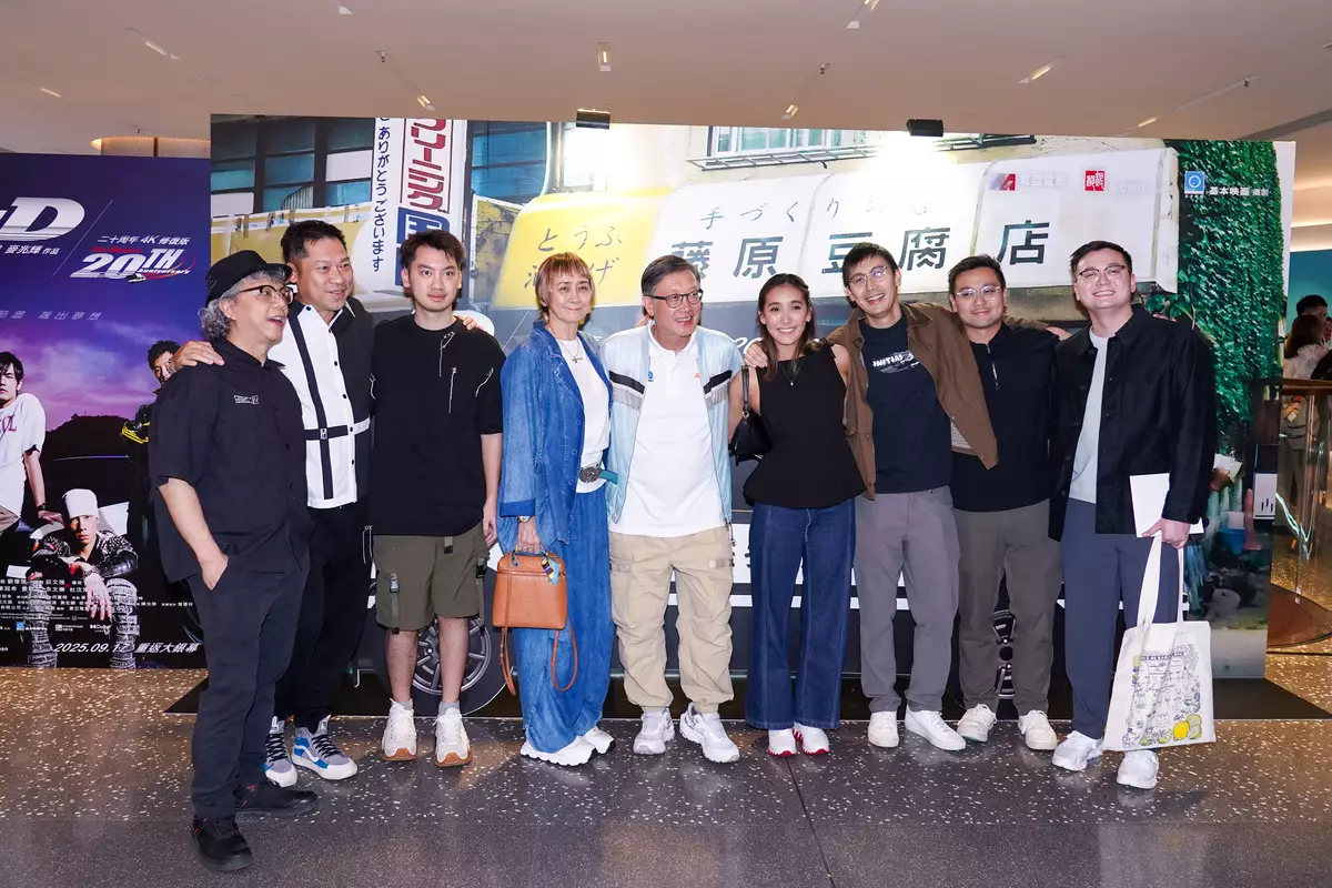 劉偉強與麥兆輝經典作品、寰亞電影《頭文字D》20周年,4K修復杜比全景聲版重返大銀幕,前晚在MCL AIRSIDE舉行首映party,寰亞傳媒行政總裁林孝賢、導演劉偉強與太太和子女、導演麥兆輝與太太、電影配樂陳光榮與太太、伍允龍、蔡穎恩(Evelyn)、黃淑蔓(Feanna)、連家穎(Vian)、樂隊Nowhere Boys主音Van、江博熙、楊煜謙(Nicolas)、「小薯茄」的程人富、童童、阿J和肥蚊等捧場,他們紛紛在「藤原豆腐店」和「AE86」布景前打卡,非常熱鬧。而AE86車迷駕駛愛車到戲院捧場,十幾架整齊泊在停車場,十分壯觀。