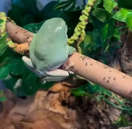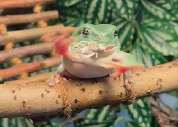 綜合外媒報導,國外一名女飼主卡莉(Carly)飼養了3隻白氏樹蛙作寵物,其中一隻白氏樹蛙「葛波」(Gobble)的行為卻格外笨拙。每逢卡莉給牠餵食昆蟲時,葛波總是忘記正確的進食方式,不斷亂揮小手嘗試固定口中的獵物,結果卻因重心不穩從樹枝摔下,畫面相當滑稽。