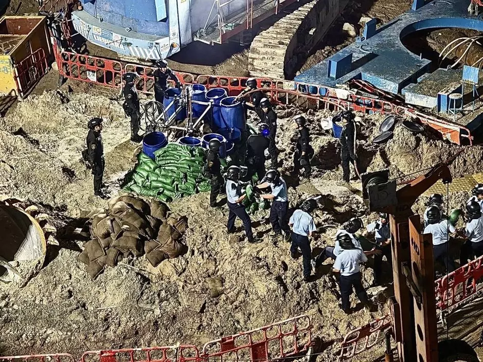 警方通宵處理鰂魚涌濱海街地盤發現的戰時炸彈。警方FB圖片