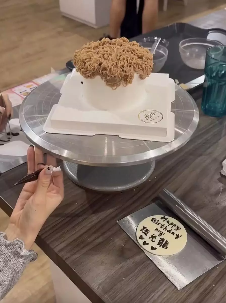 而Renee亦在IG晒出與伍允龍的合照,並分享親手製作生日蛋糕的影片,可見她全程親力親為,在生日牌上除了寫上「Happy Birthday my伍允龍」,還畫了個心心圖案,冧爆伍允龍!