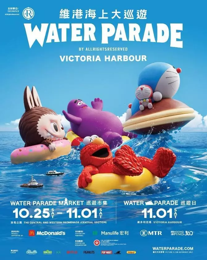 今年秋天,維多利亞港將化身為藝術與娛樂的夢幻舞台。由香港著名創意品牌 AllRightsReserved(ARR)策劃及主辦的全球首創「維港海上大巡遊」by AllRightsReserved ( Water Parade by AllRightsReserved at Victoria Harbour),將破天荒匯聚風靡全球的人氣 IP 及藝術家,帶來兩大重點活動,四個IP 角色將化身巨型海上充氣雕塑於10月25日起華麗亮相維港海面,更會於11月1日組成史上最夢幻巡遊艦隊,在維港沿兩岸巡遊,穿梭九龍與香港島,規模空前。另外更會於10月25日至11月1日於中西區海濱長廊中環段(近添馬公園)舉辦為期八天的「巡遊市集」,將加入更多 IP 為大家帶來多元 IP 互動娛樂體驗。讓市民及旅客一次過感受藝術、娛樂與文化的完美結合,體驗難忘的視覺盛宴與互動體驗,參與「全球首創」的最大型年度盛事。