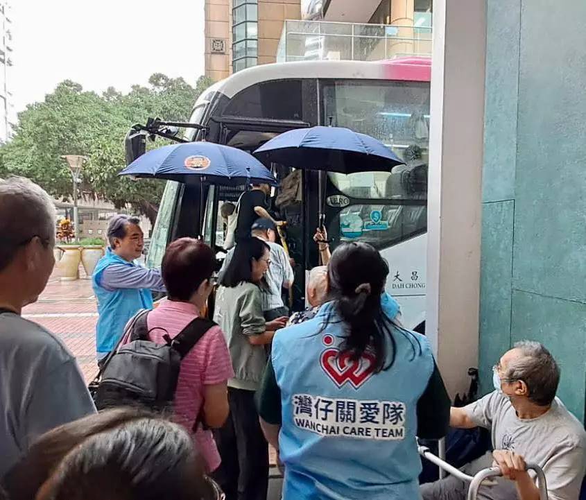 東區35隊關愛隊全數出動,灣仔區關愛隊亦跨區作出支援。民政總署合共開設19個臨時庇護中心,昨晚有近450名居民入住,相關民政處人員和關愛隊成員及義工於中心通宵提供支援,並為他們提供床鋪和飲食。
