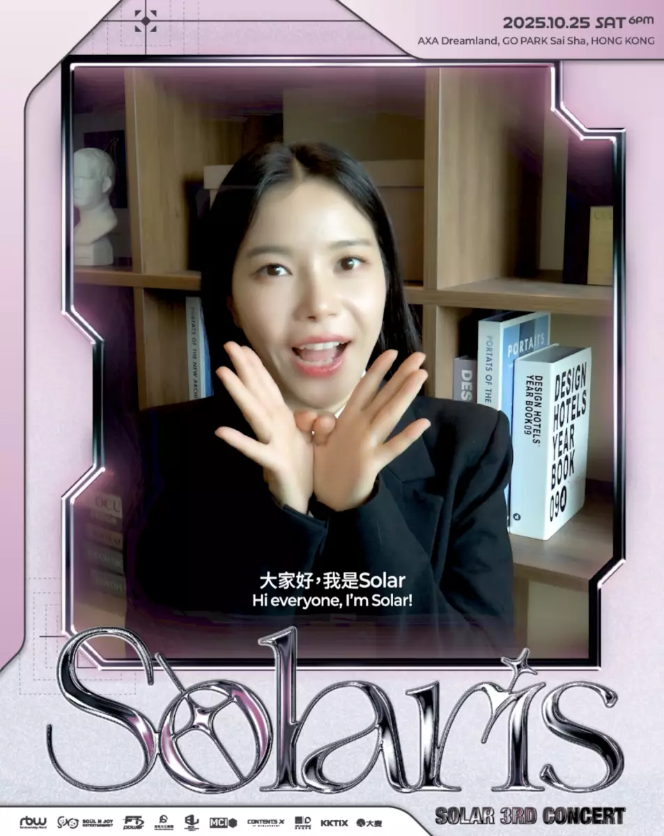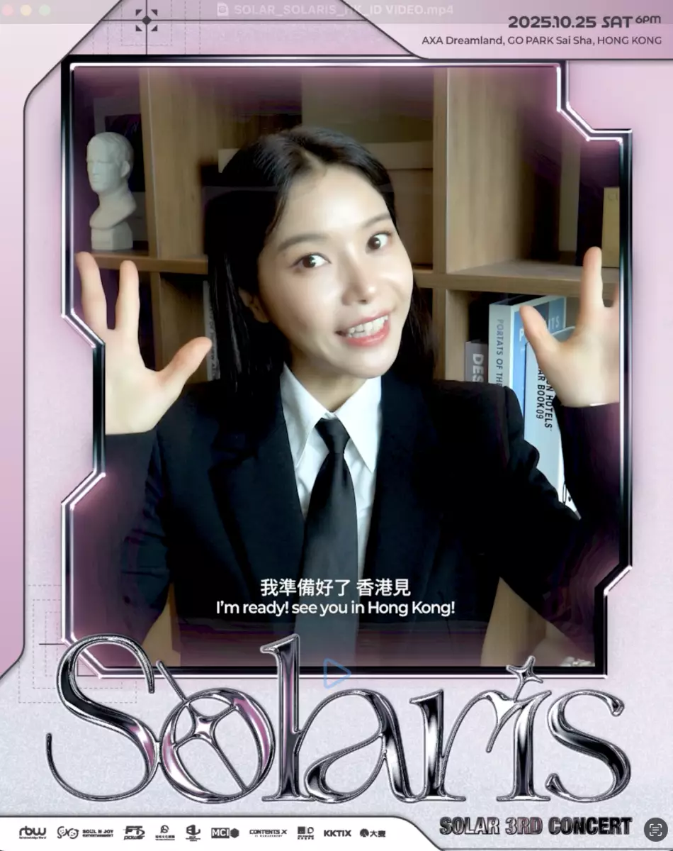 韓國女團MAMAMOO隊長頌樂Solar(金容仙)自從公佈定於10月25日將到AXA安盛創夢館,西沙GO PARK舉行《Solar 3rd CONCERT [Solaris] in HONG KONG》她的第三次個人巡迴演唱會後,隨即引來K-POP粉絲們的熱烈討論。而為了早一點跟歌迷們打招呼,Solar更準備了問候影片送給大家,當然更少不了一展她的語言實力!