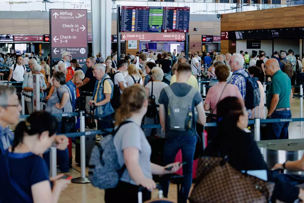 德國柏林勃蘭登堡機場航站樓內,大批旅客正在候機。AP圖片