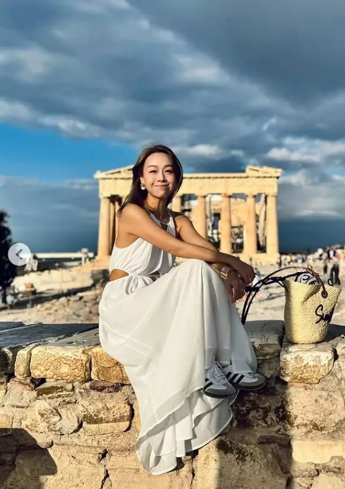 黃心穎在IG晒出於雅典巴特農神廟的靚相,並留言表示自小學三年級讀過有關希臘神話和女神等的事迹後,就一直很渴望到希臘看看當地風景,今次終於夢想成真!她還強烈建議大家早上8點去,因為這樣可以避開擁擠的人潮。